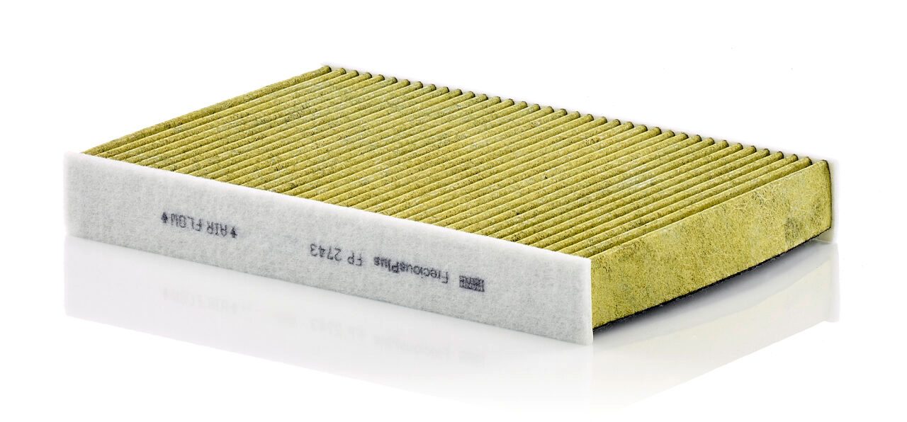 Biofunctional MANN-FILTER FreciousPlus cabin air filters - nearly 100% protection against nitrogen oxides, dust, allergens and mould - harmful gases and unpleasant odours are also eliminated and virus aerosols filtered. The three-layer filter technology absorbs almost 100% of allergens, reduces the growth of molds and bacteria by more than 98% and stops fine dust almost completely.Specification
