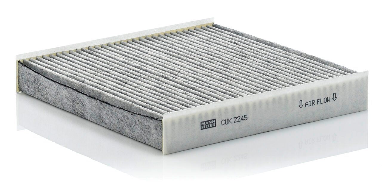 High-quality MANN-FILTER cabin filters with active carbon - nearly 100% protection from particles like pollen, diesel soot & tyre abrasion / Additional protection from harmful gases & unpleasant odour. The trated highly-effective activated carbon gives protection against harmful gases such as ozone, nitrogen oxide or sulphur dioxide and eliminates unpleasant odours during the entire service interval.