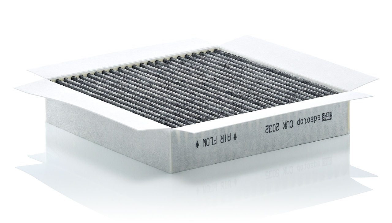 High-quality MANN-FILTER cabin filters with active carbon - nearly 100% protection from particles like pollen, diesel soot & tyre abrasion / Additional protection from harmful gases & unpleasant odour. The trated highly-effective activated carbon gives protection against harmful gases such as ozone, nitrogen oxide or sulphur dioxide and eliminates unpleasant odours during the entire service interval.