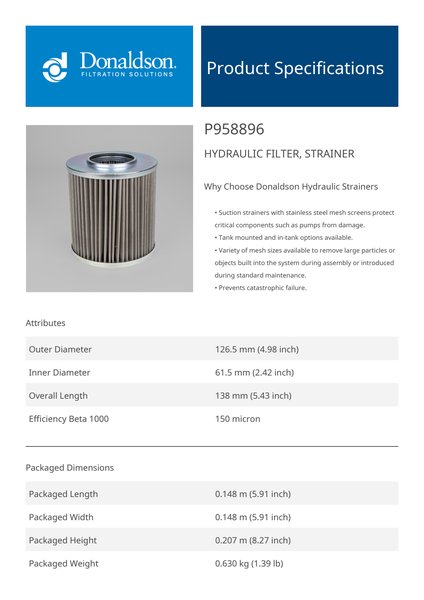 The efficiency of the element is shown using the Micron (µ) and Beta (β) ratings. The micron rating indicates the size of the particle being filtered and the beta rating the efficiency, calculated as 1/β.