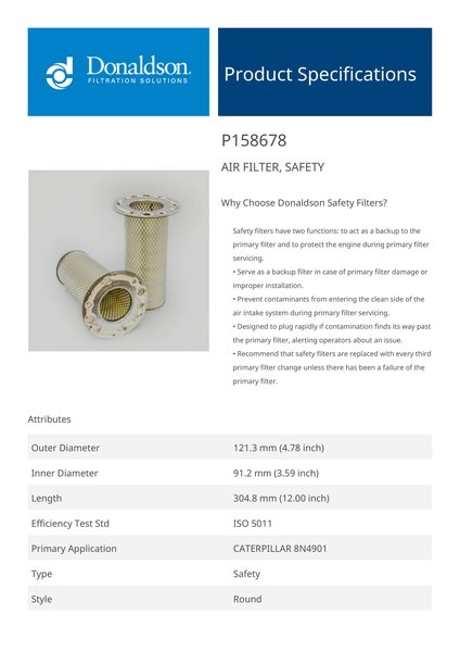 Why Choose Donaldson Safety Filters?Safety filters have two functions: to act as a backup to the primary filter and to protect the engine during primary filter servicing.