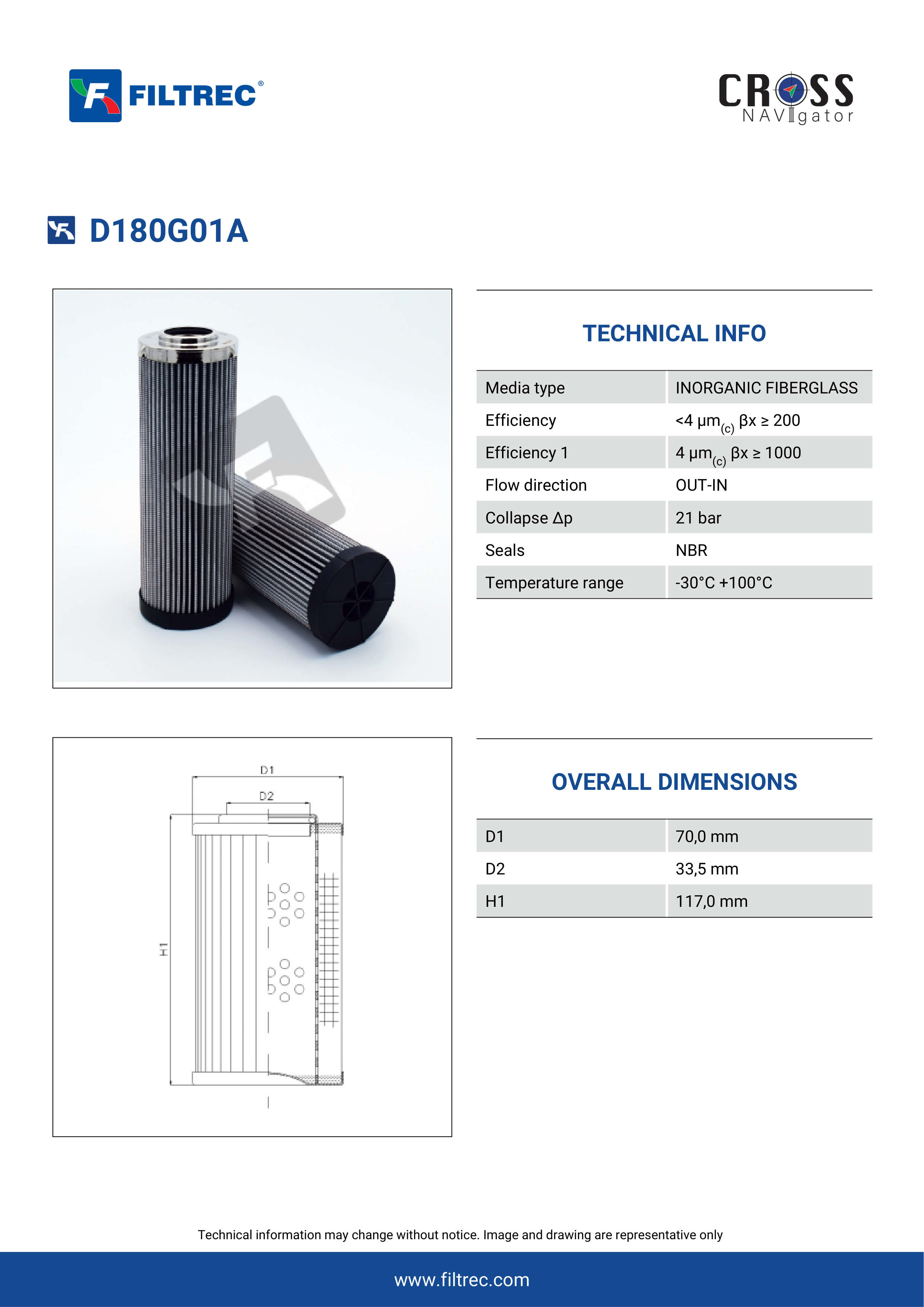 Genuine Filtrec D180G01A. This Filtrec element is designed to meet or exceed the quality and performance of brand OEM’s ensuring superior filtration performance and long-lasting durability.