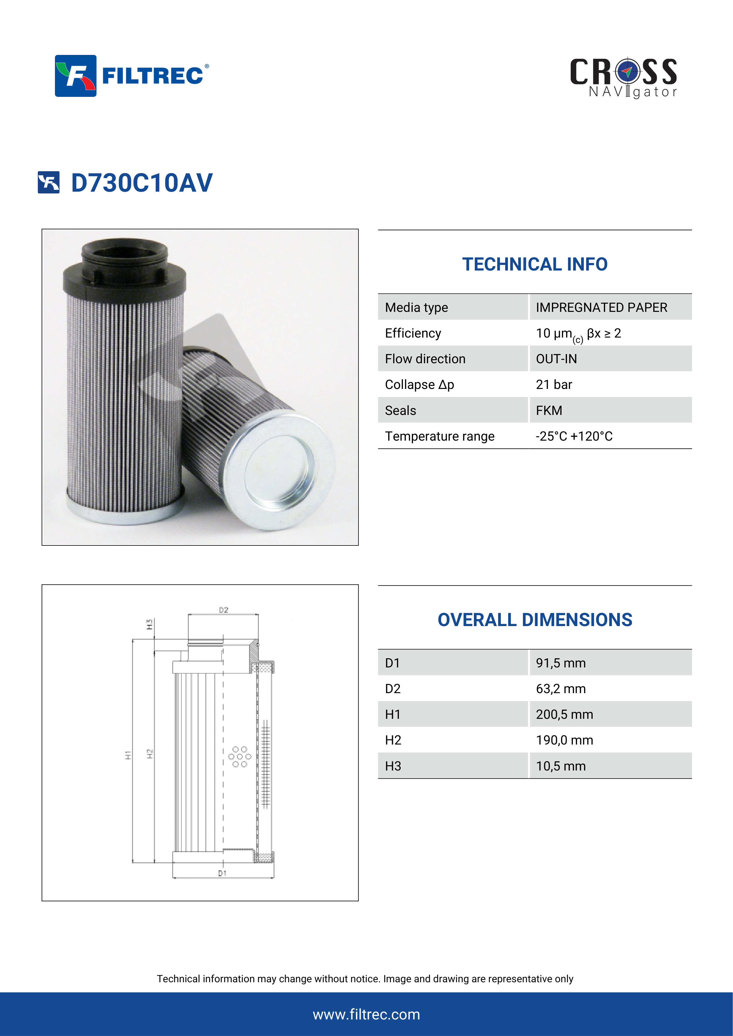 Engineered with their high performance media and a durable design, the D730C10AV provides reliable and consistent performance over its lifespan, even in harsh operating environments. When you order from FilterFinder, you can trust that you are getting a reliable and high-quality replacement filter that will keep your system running smoothly.