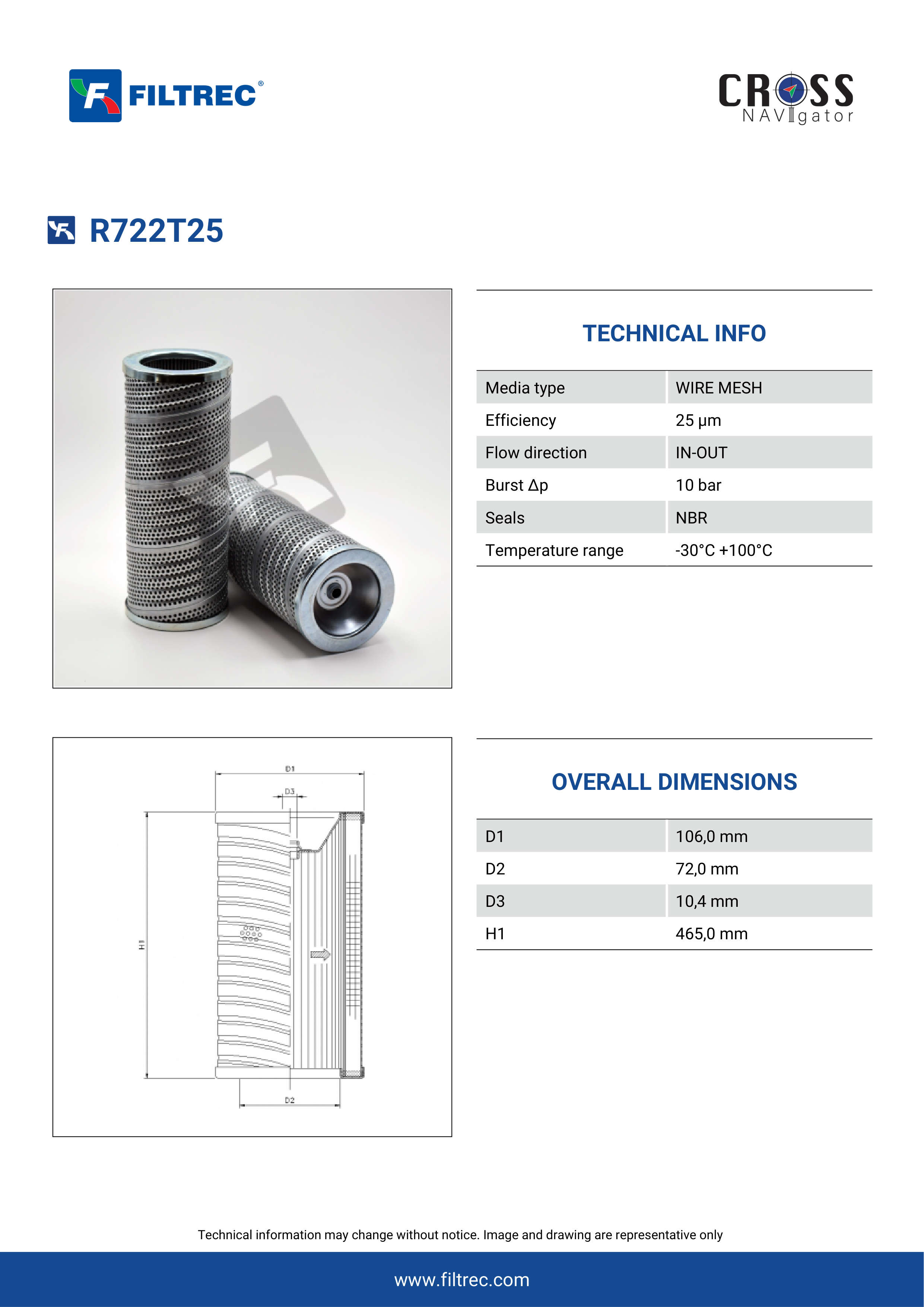 Genuine Filtrec R722T25. This Filtrec element is designed to meet or exceed the quality and performance of brand OEM’s ensuring superior filtration performance and long-lasting durability.