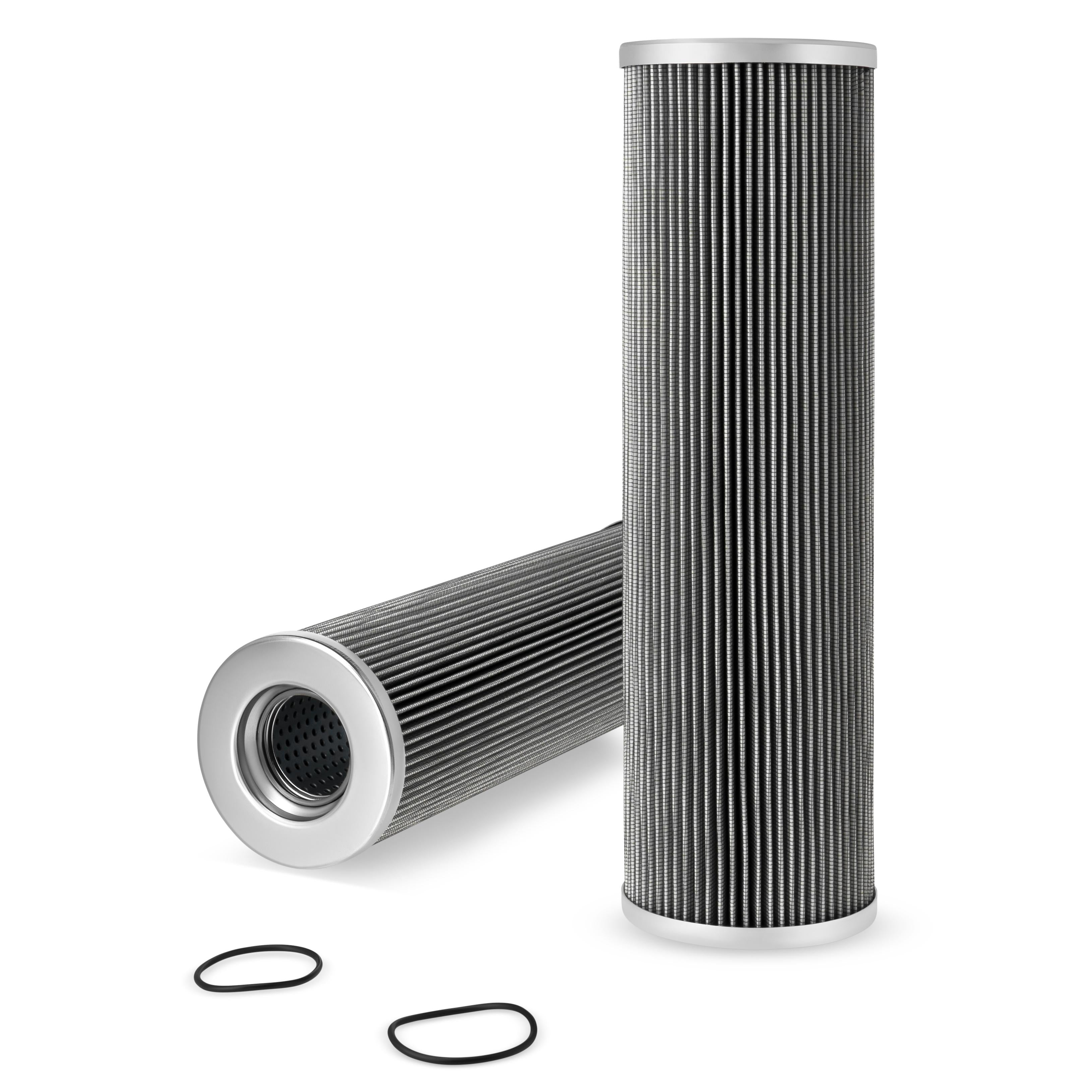 The efficiency of the element is shown using the Micron (µ) and Beta (β) ratings. The micron rating indicates the size of the particle being filtered and the beta rating the efficiency, calculated as 1/β.