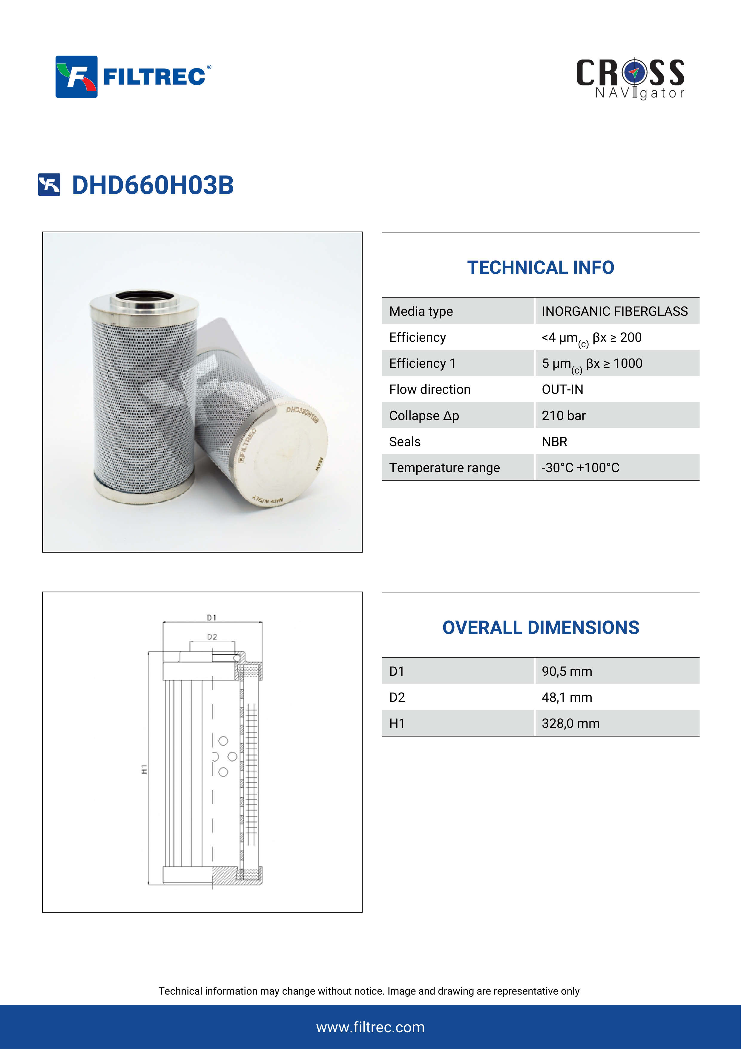 Genuine Filtrec DHD660H03B. This Filtrec element is designed to meet or exceed the quality and performance of brand OEM’s ensuring superior filtration performance and long-lasting durability.